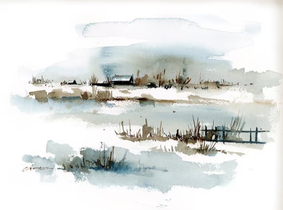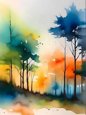 Expérimentation par petites séquences, avec démonstration de l’artiste puis exploration libre : Lavages (aplats, dégradés, dégradé en dégradé). Mouillé sur sec (précision, contours nets). Mouillé sur mouillé (effets diffus, textures). Superpositions (transparences, mélanges optiques). Réserves et retraits (usage de gomme à masquer, pinceau sec, chiffon).