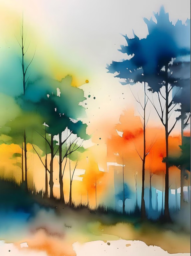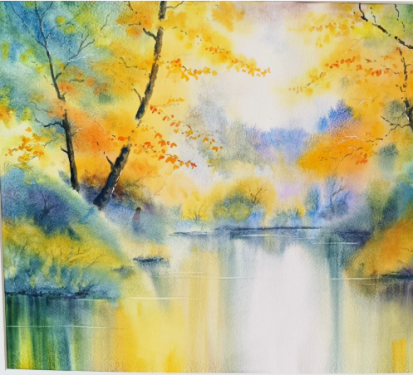 Découverte des techniques d’aquarelle . Message clé : « Ici, pas de recherche de perfection ni d’œuvre finale, mais une exploration personnelle. »