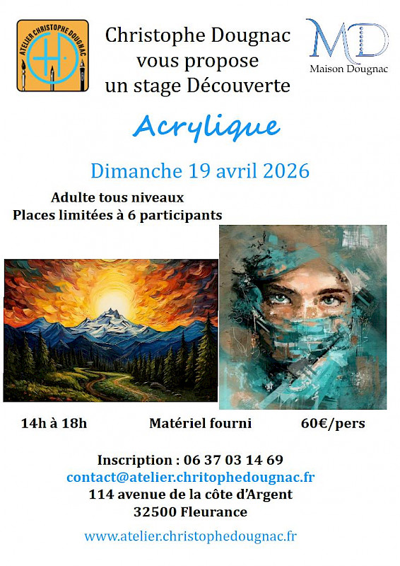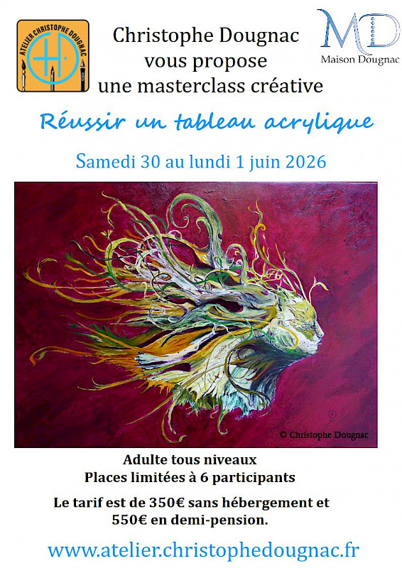 En savoir plusStage acrylique à l’après-midi avec Christophe Dougnac, peintre professionnel.